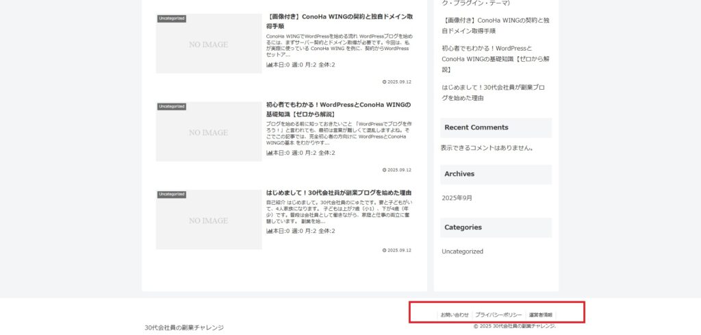 - プライバシーポリシー/お問い合わせ/運営者情報を追加